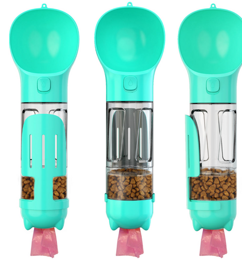 4-in-1 Universal Pet Water Bottle for Cats & Dogs — Includes Waste Scoop & Bags — Portable Outdoor Drinking & Feeding Bowl